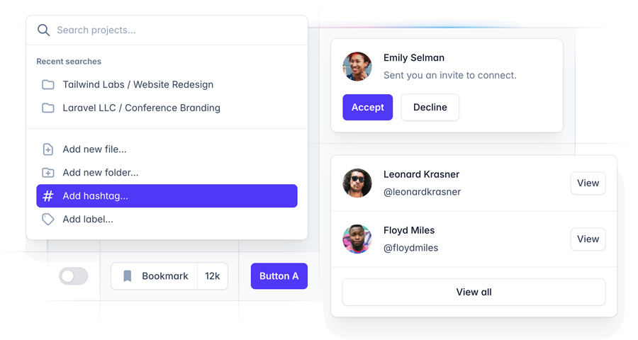 بیش از ۵۰۰ نمونه کامپوننت حرفهای، کاملاً واکنشگرا و با دقت طراحیشده که میتوانید به پروژههای Tailwind خود اضافه کرده و به دلخواه سفارشیسازی کنید.